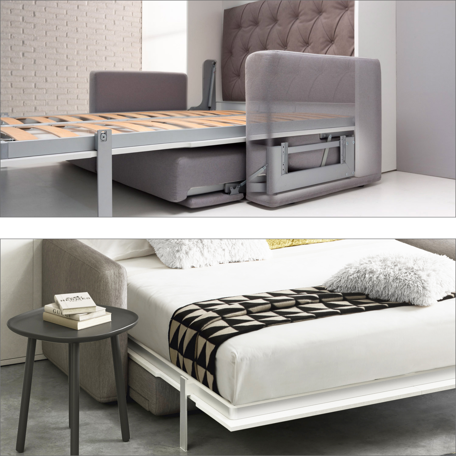 Un semplice gesto vi permette di ottenere con movimenti sincronizzati più spazi: da un letto matrimoniale ad un divano o ancora ad un tavolo da pranzo.