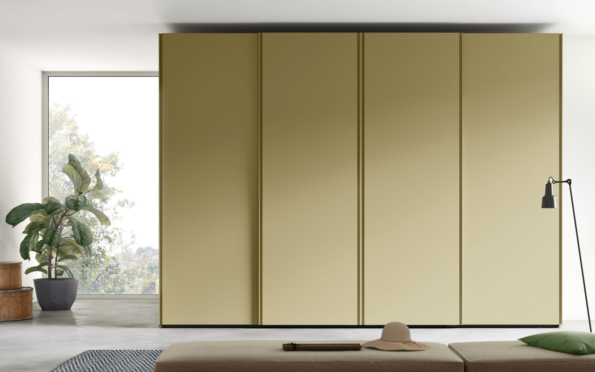 Le ante a gola accompagnano una progettazione ordinata e capiente, dove ogni elemento è studiato per rendere l’organizzazione semplice e intuitiva.