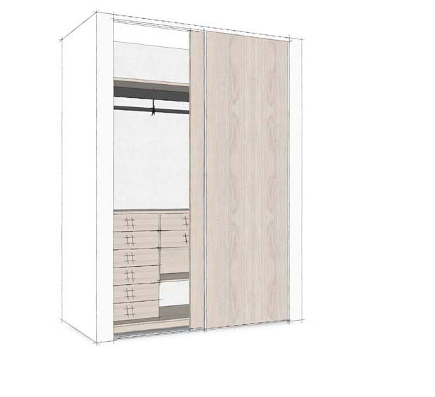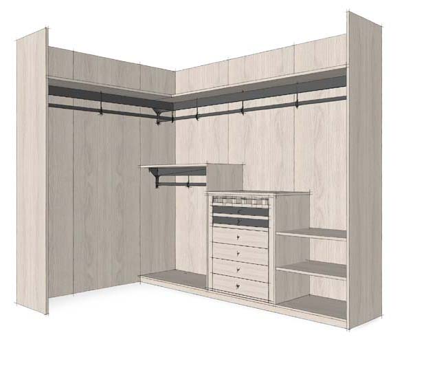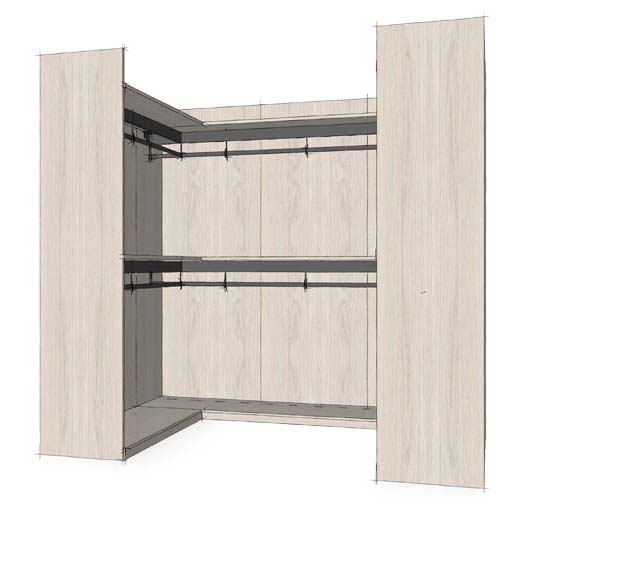 To complete the dressing room you can add made-to-measure sliding doors to close it, in different finishes including glass.