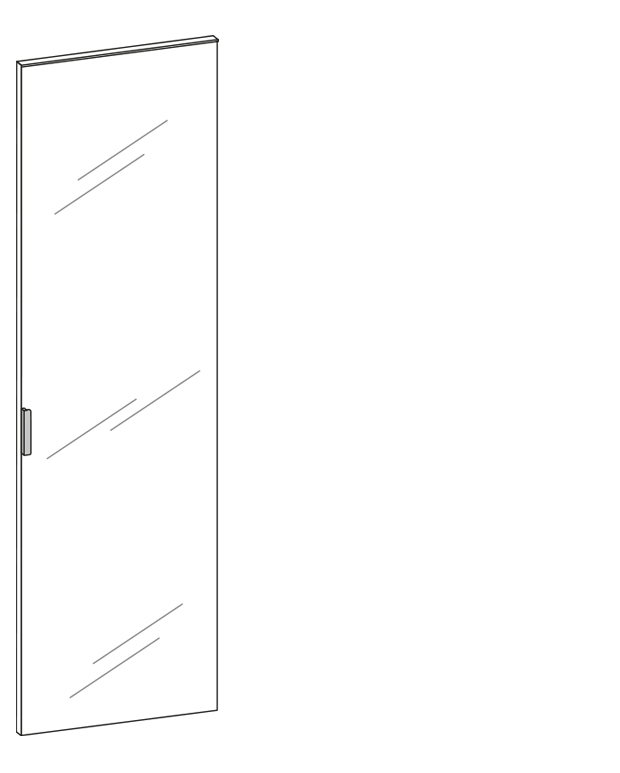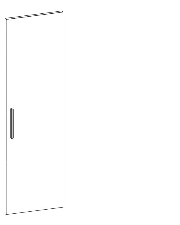 Anta dritta con profilo laterale tutta altezza con gola. Maniglia integrata disponibile nei colori alluminio, bianco, beige e panna
