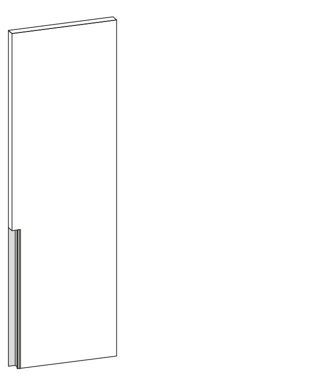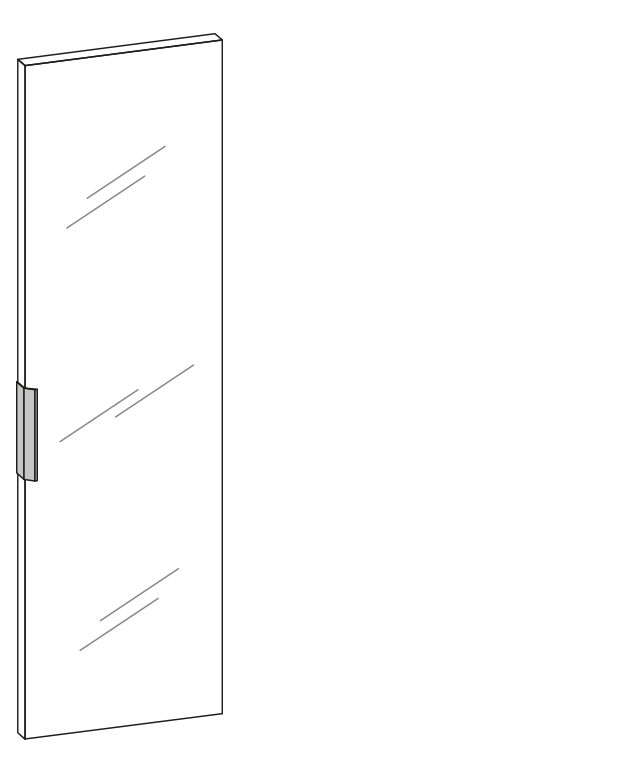 Composta da un pannello sp.18 mm in tutte le finiture con bordo ABS in tinta e uno specchio sp.4 mm applicato in luce con profilo superiore ed inferiore in alluminio. Maniglia E9.